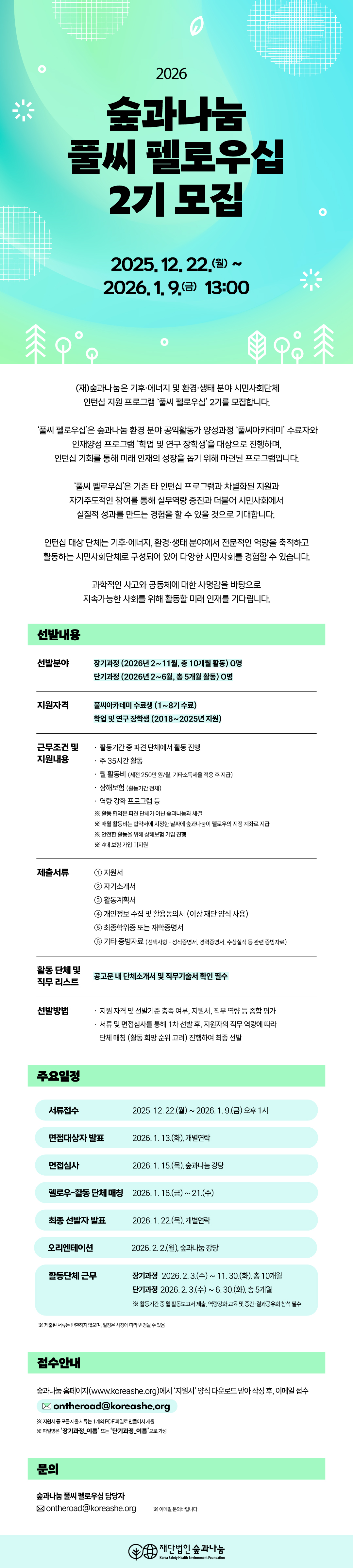 ▶▶▶ 2026 풀씨 펠로우십 2기 공고문(클릭) ◀◀◀