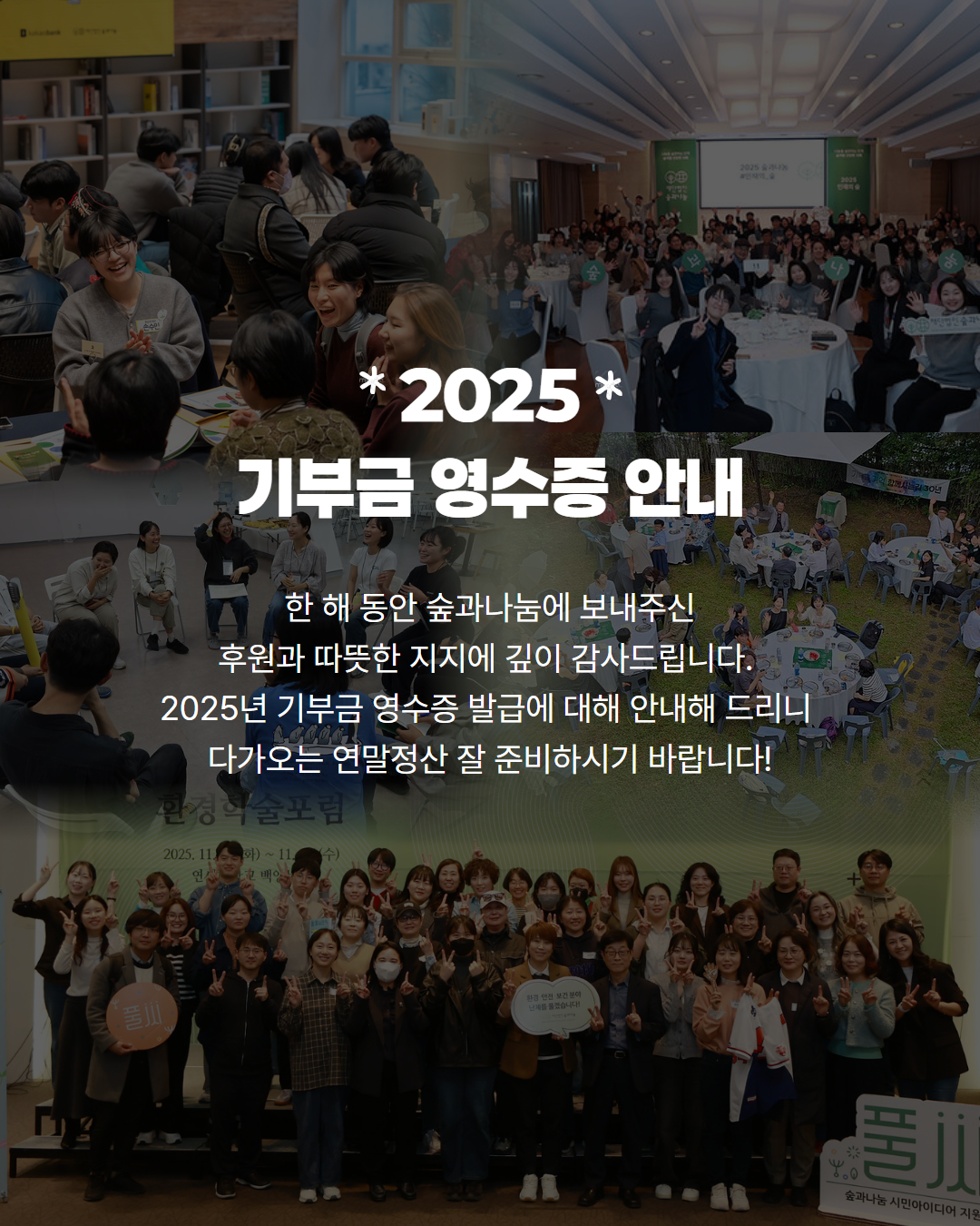 - 2025년 12월 31일까지 이름 및 주민등록번호가 숲과나눔에 등록되어 있어야 국세청 연말정산 간소화 서비스 이용 가능