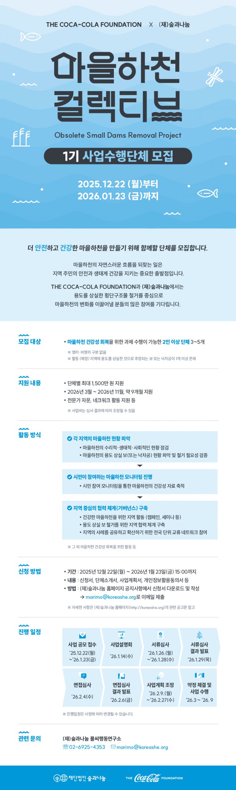 [모집] 마을하천컬렉티브 1기 수행단체 모집 (12/22~1/23)